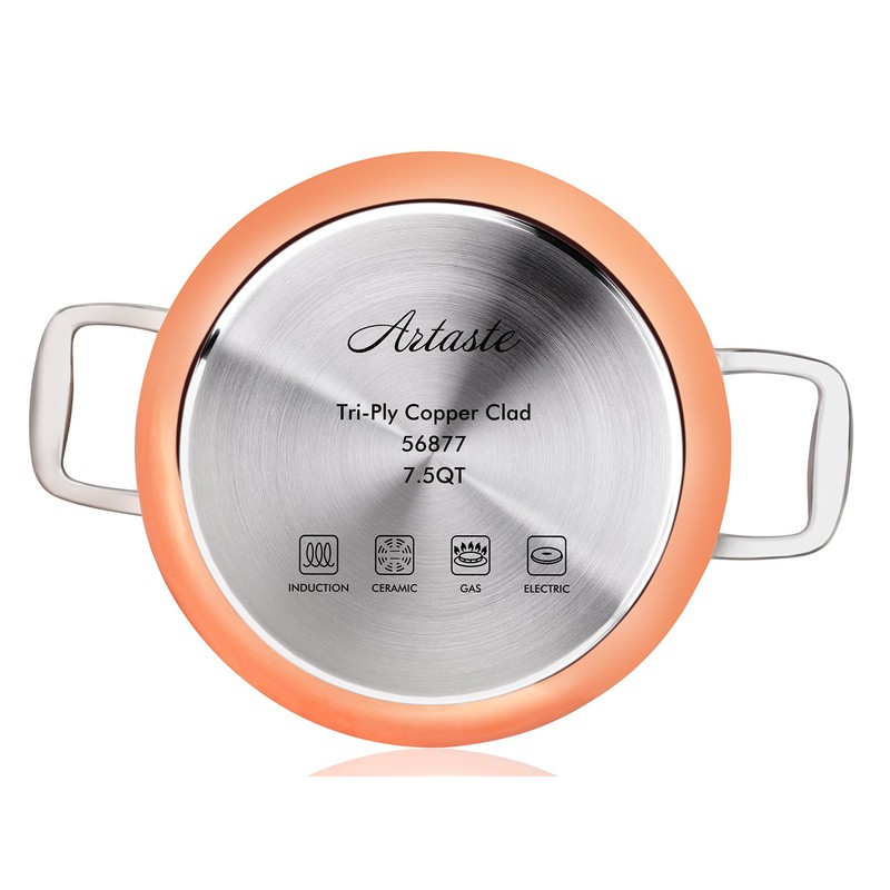Artaste 56877 Rain Tri-Ply Copper Clad Induction Ready Stock Pot with Steamer, 7.5-Quart