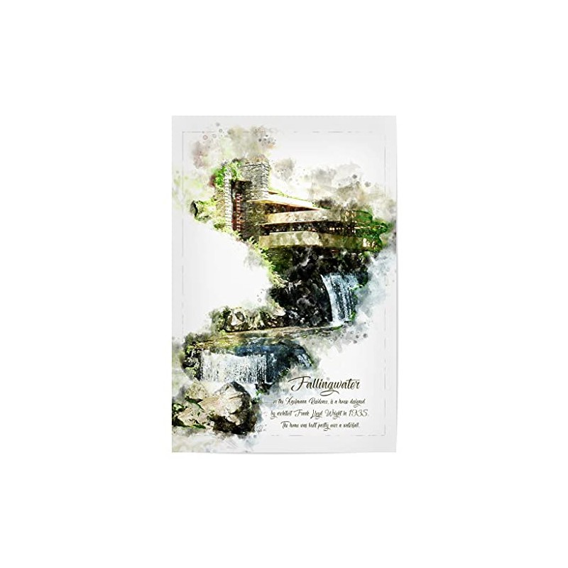 artboxONE Poster 30 x 20 cm Nature Fallingwater Portrait Format Watercolour Picture Frank Lloyd Wright Architecture Architect