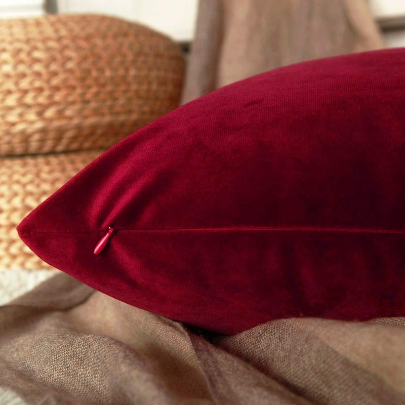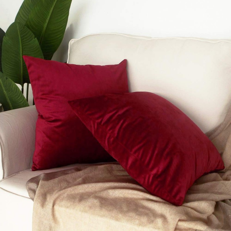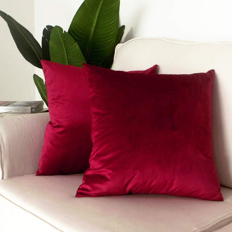 Artcest Set of 2, Cozy Solid Velvet Throw Pillow Case, Decorative Couch Cushion Cover, Soft Sofa Euro Sham with Zipper Hidden, 12"x12" (Ruby Red)