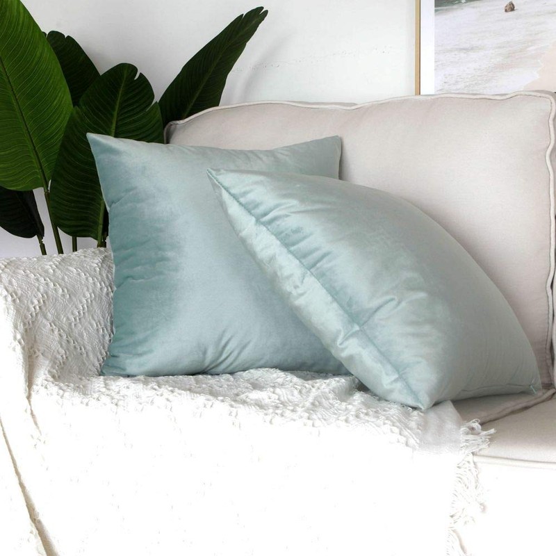 Artcest Set of 2 Decorative Velvet Throw Pillow Cases, Soft Solid Cushion Covers for Sofa Couch and Bed, 20"x20" (Seafoam)