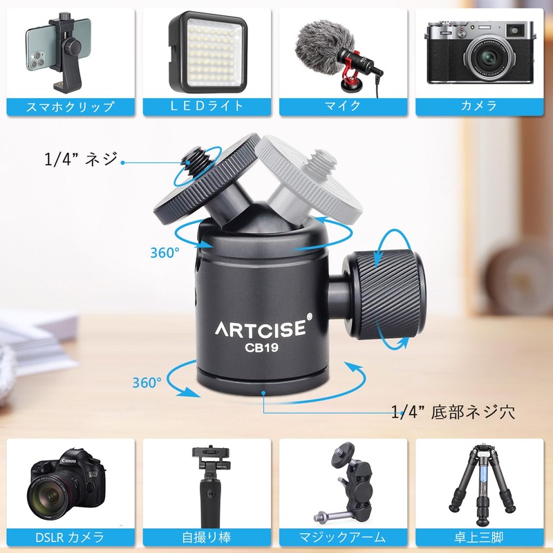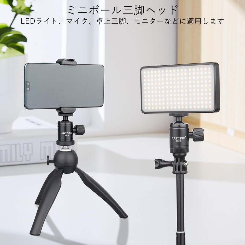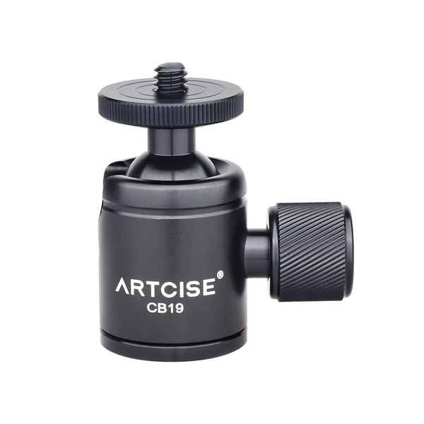 ARTCISE 19mm Ball, Small, Free-Head, 1/4" Screw, Lightweight, CNC Machined, Aluminum Alloy, Mini Tripod Head, 360 Degree Rotation, Panoramic Camera Head, Compatible with Light Stand, DSLR Camera,