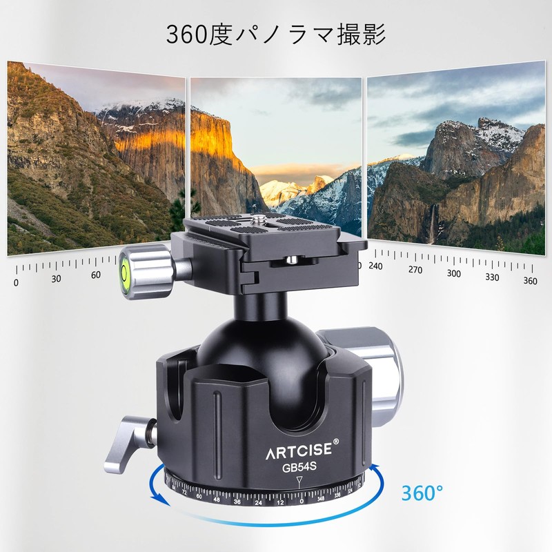 ARTCISE 54mm Low Center of Gravity CNC Machined Aluminum 360 Degree Rotation Panoramic Pan Arca-Swiss Compatible Quick Shoe Tripod Head Freedom Head for DSLR Camcorder Max Load Capacity 25kg