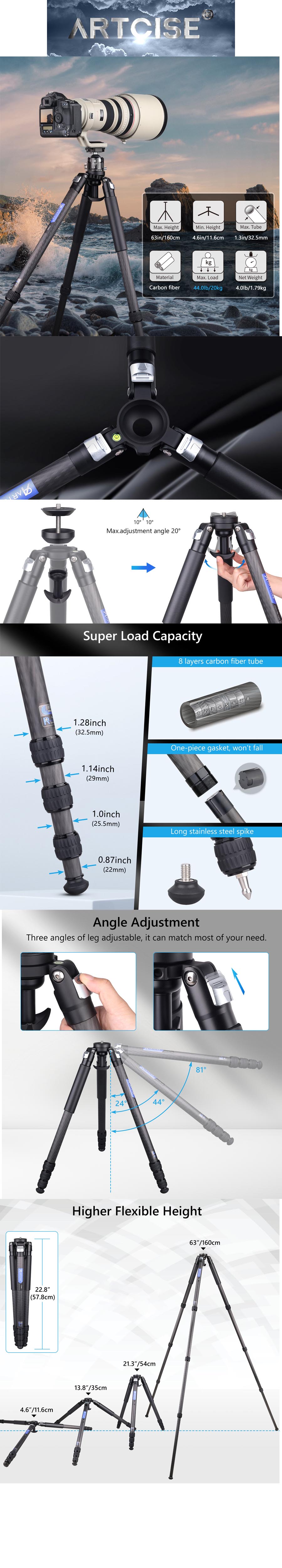 ARTCISE Carbon Fiber Tripod Heavy Duty Bowl Tripod 32mm Tube,Load 55lbs 65mm Bowl Adapte