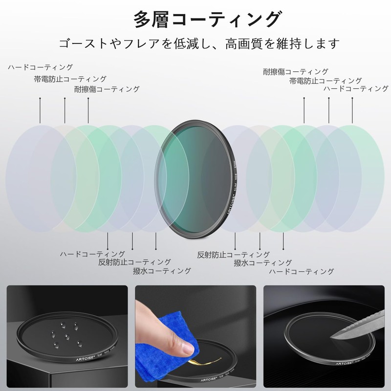 - 【5重保護コーティング】 防傷・撥水・防油・防汚・帯電防止機能を全フィルターに標準装備。レンズ保護と画質向上を両立。