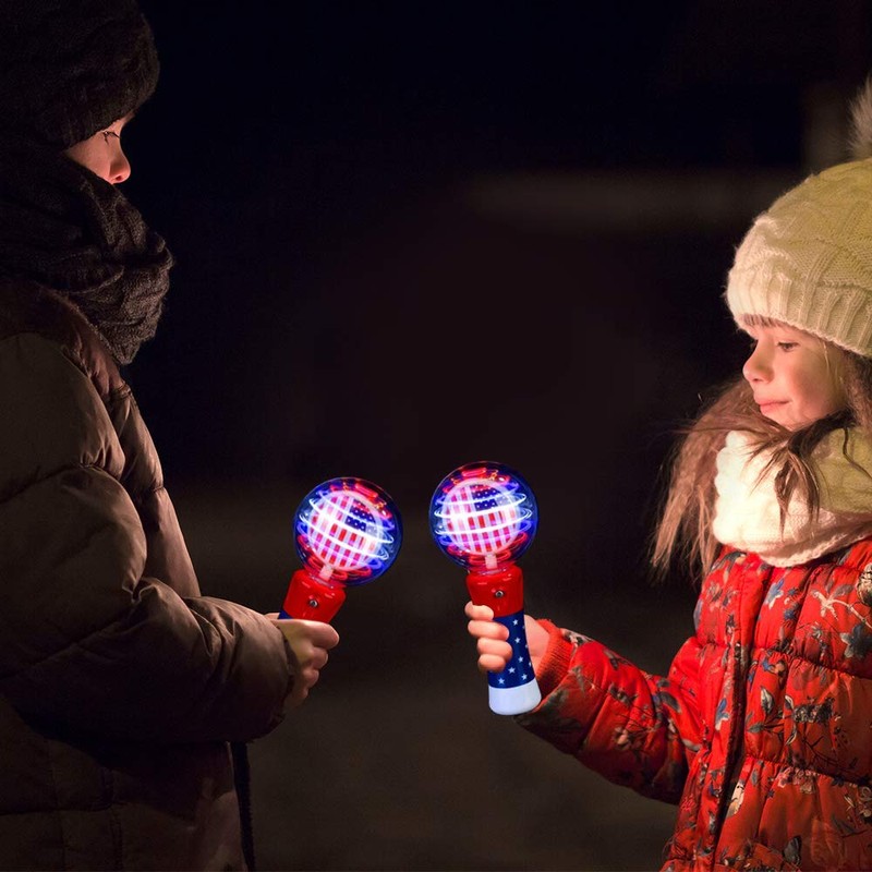 - MESMERIZING GOODNESS: Keep your kiddo enthralled and engaged with a kaleidoscope of color! They will love this 7.5” patriotic magic ball wand that produces a mesmerizing spinning light show and engulfs any room in eye-catching hues. A recipe for hours of excited fun.