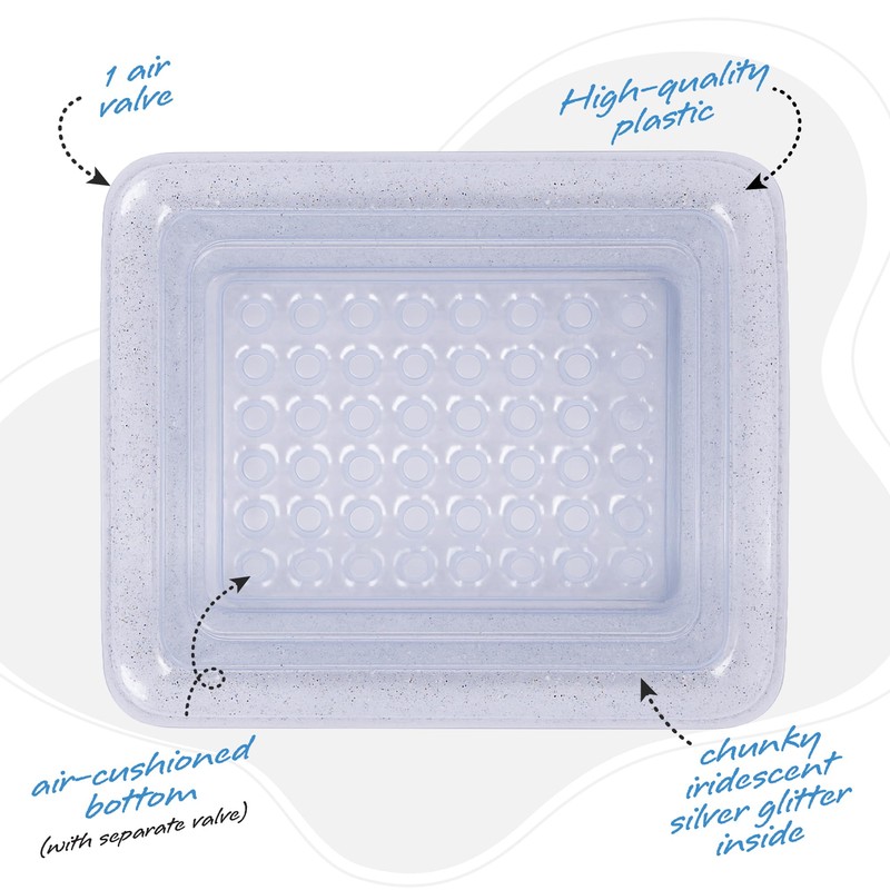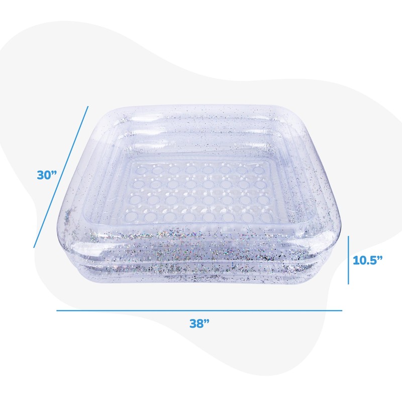 • THE COMPLIMENT-GETTER: A backyard pool you’ll want to show off. No jarring colors here. Transparent, with chunky iridescent silver glitter inside, our splash pad captures the kids’ imagination while blending into your space.