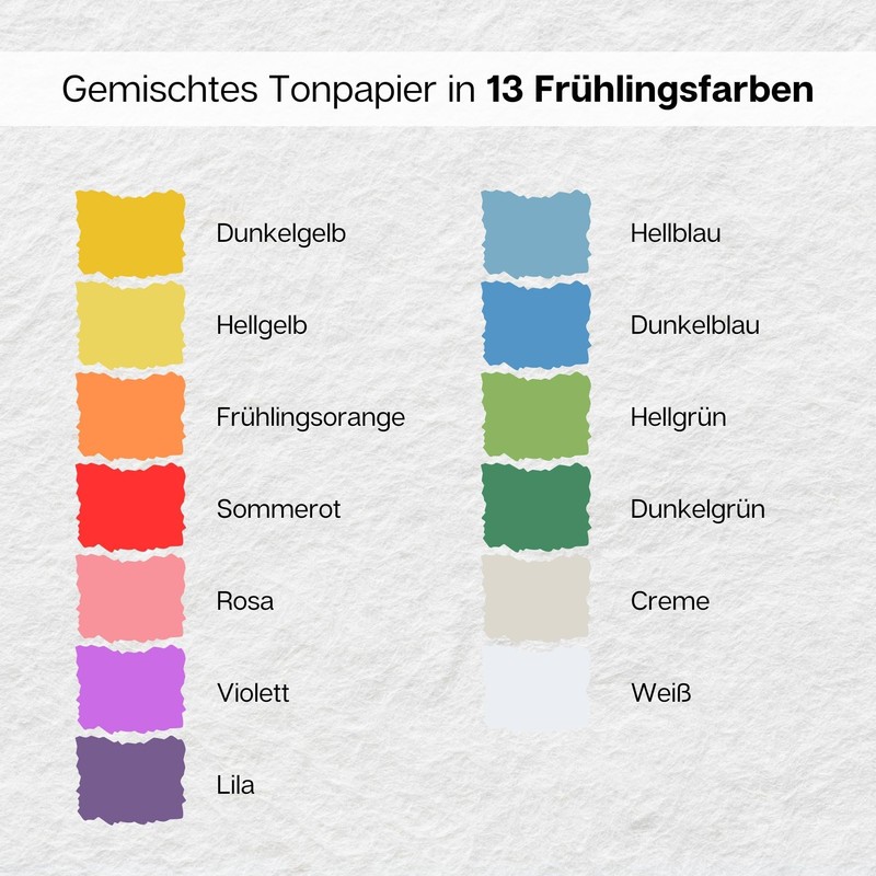 - Colourful choice of colours - Our craft paper contains 13 different spring colours. With this wide range of colours, children and adults always have the right colours at hand.