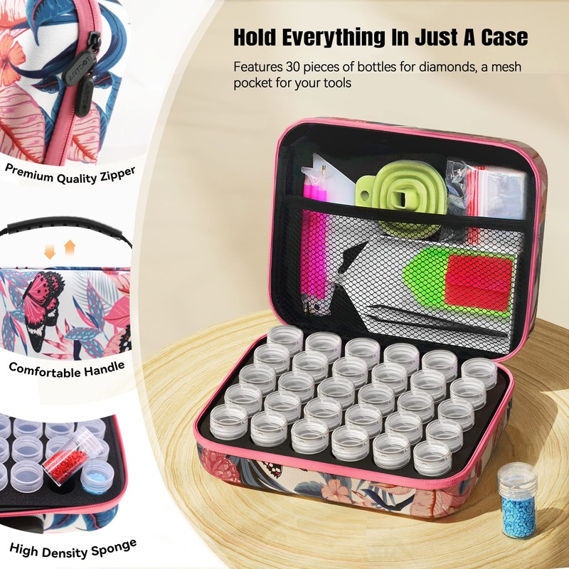 - 【Fashion Design】 Get this diamond painting storage comes in a on-trend look, make your diamond painting art more stylish with a beautiful pink butterfly flower pattern.