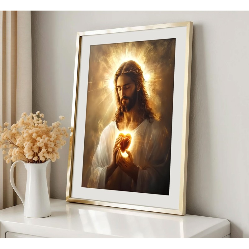 - Arte de pared del Sagrado Corazon De Jesús: esta hermosa imagen de misericordia divina representa el amor y el cuidado de Jesús, la obra de arte de Cristo Jesús no solo es un regalo visual, sino también una fuente de comodidad espiritual, perfecto para exhibir en cualquier lugar de tu hogar