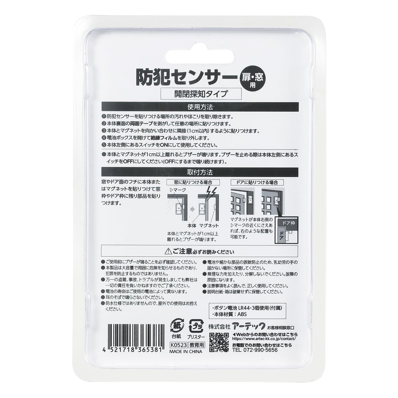Artec 36538 36538 Burglar Detection Sensor, Security Alarm, When Leaving Out, Window, Lock, Buzzer, Security Goods, Home, House Security, Popular, Door, Window, Vacant Nest, Countermeasure