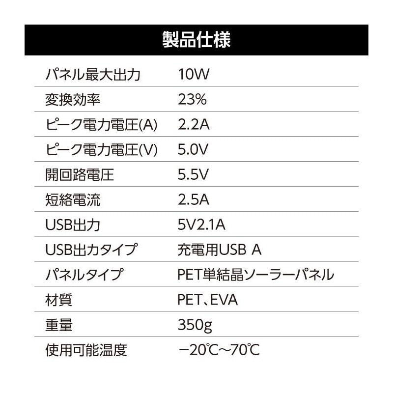 ArTec 52032 Foldable Portable Solar Charger, 10W, Black