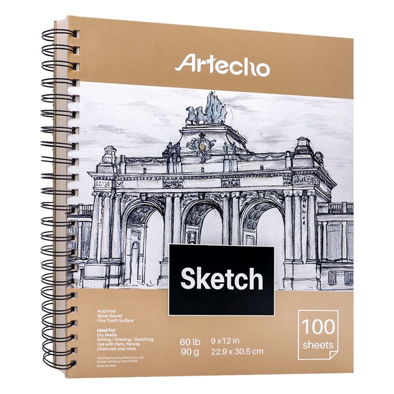 - Quality Product:Artecho Sketch Book is 100 Sheets 9*12”Sketch Book, 60lb/90g, Acid Free.