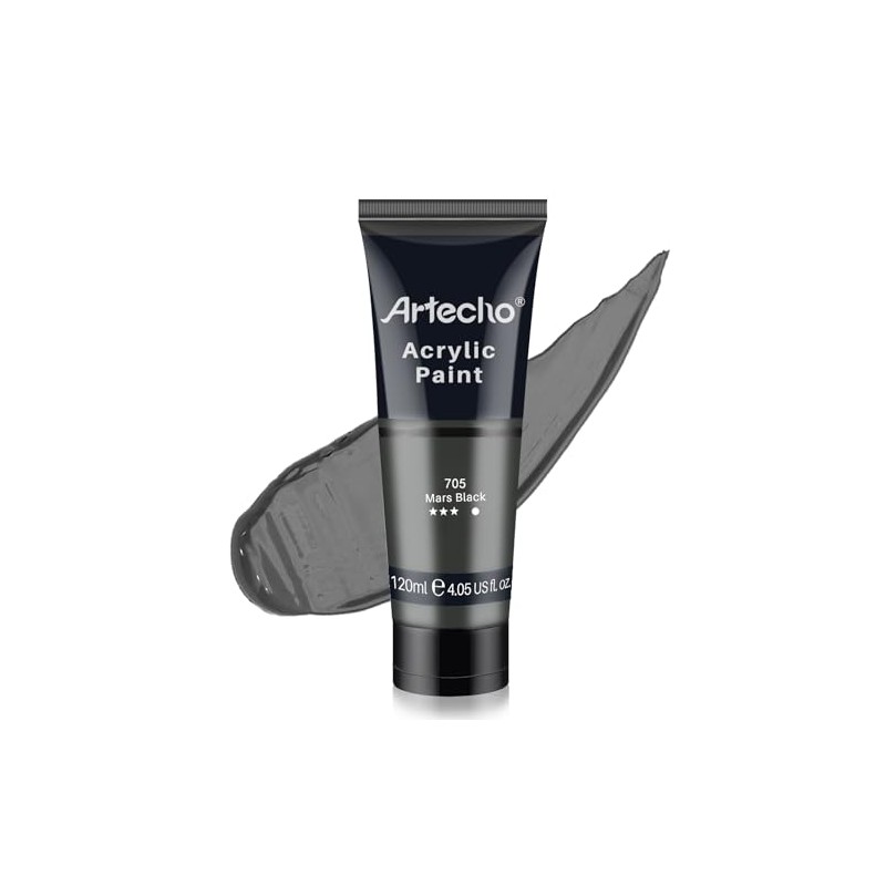 Artecho Acrylic Paint Mars Black 120 ml, Waterproof and Non-fading, Quick Drying, Acrylic Paint for Canvas, Wood, Fabric, Crafts, Leather and Stone