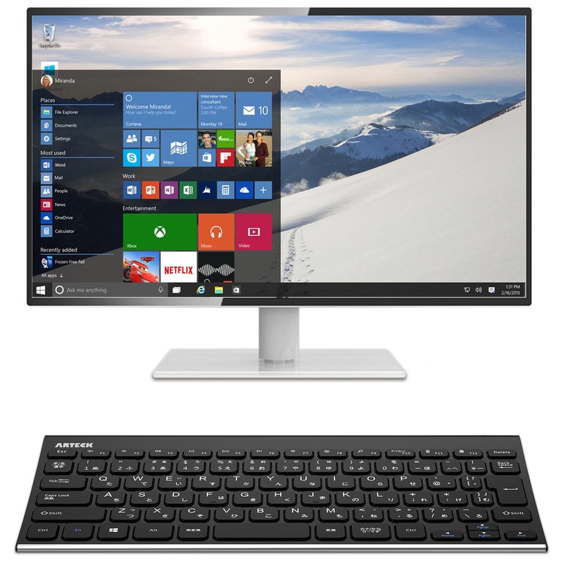 Arteck 2.4G ワイヤレスキーボード 日本語配列無線ステンレススチール 軽量 フルサイズキーボード コンピューター、デスクトップ、PC、ラップトップ、Surface、スマートテレビ、Windows10/8/7、Vista、XPとの交換性あり 充電式電池内蔵