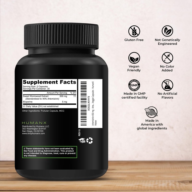 HUMANX Artemisinin 505mg with Bioperine for Greater Absorption - Supports Healthy Aging, Digestion, and Immunity - USA Third Party Tested - Vegan, Non-GMO - Artemisia Annua - Sweet Wormwood Extract