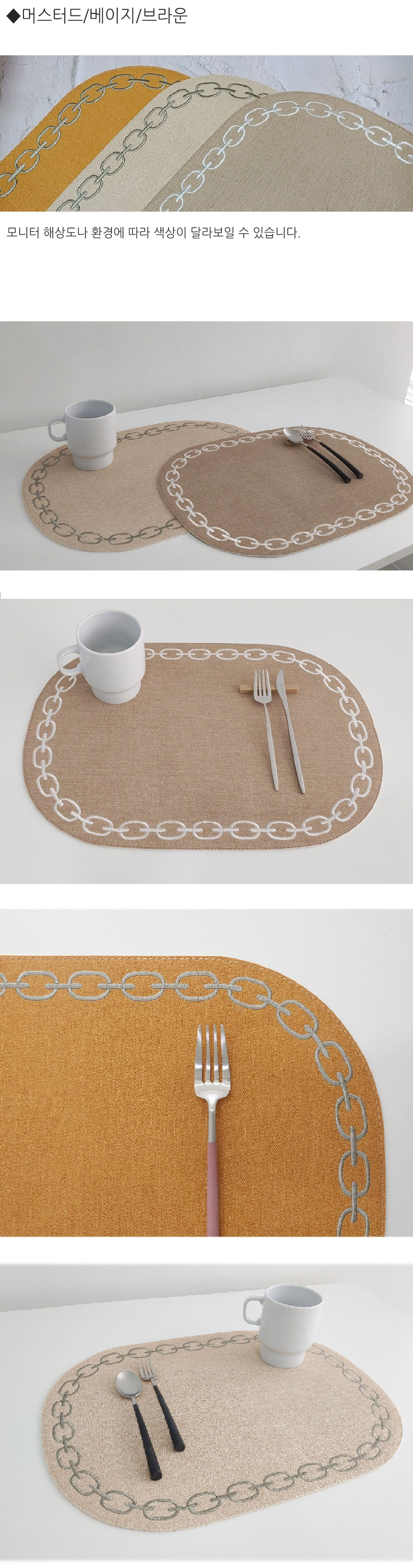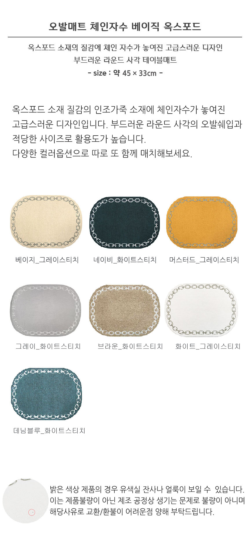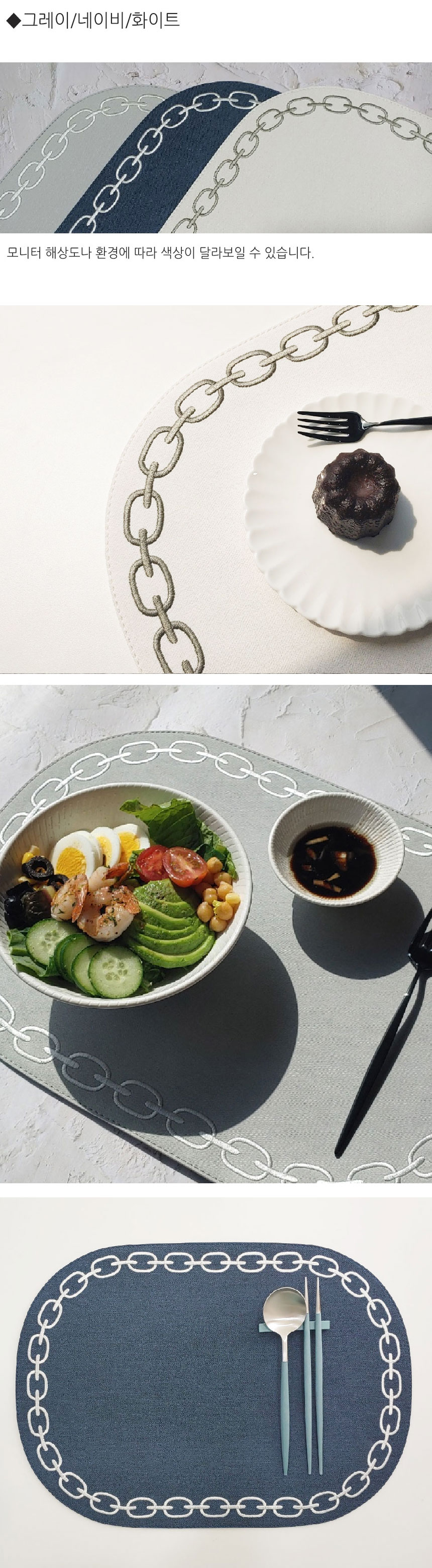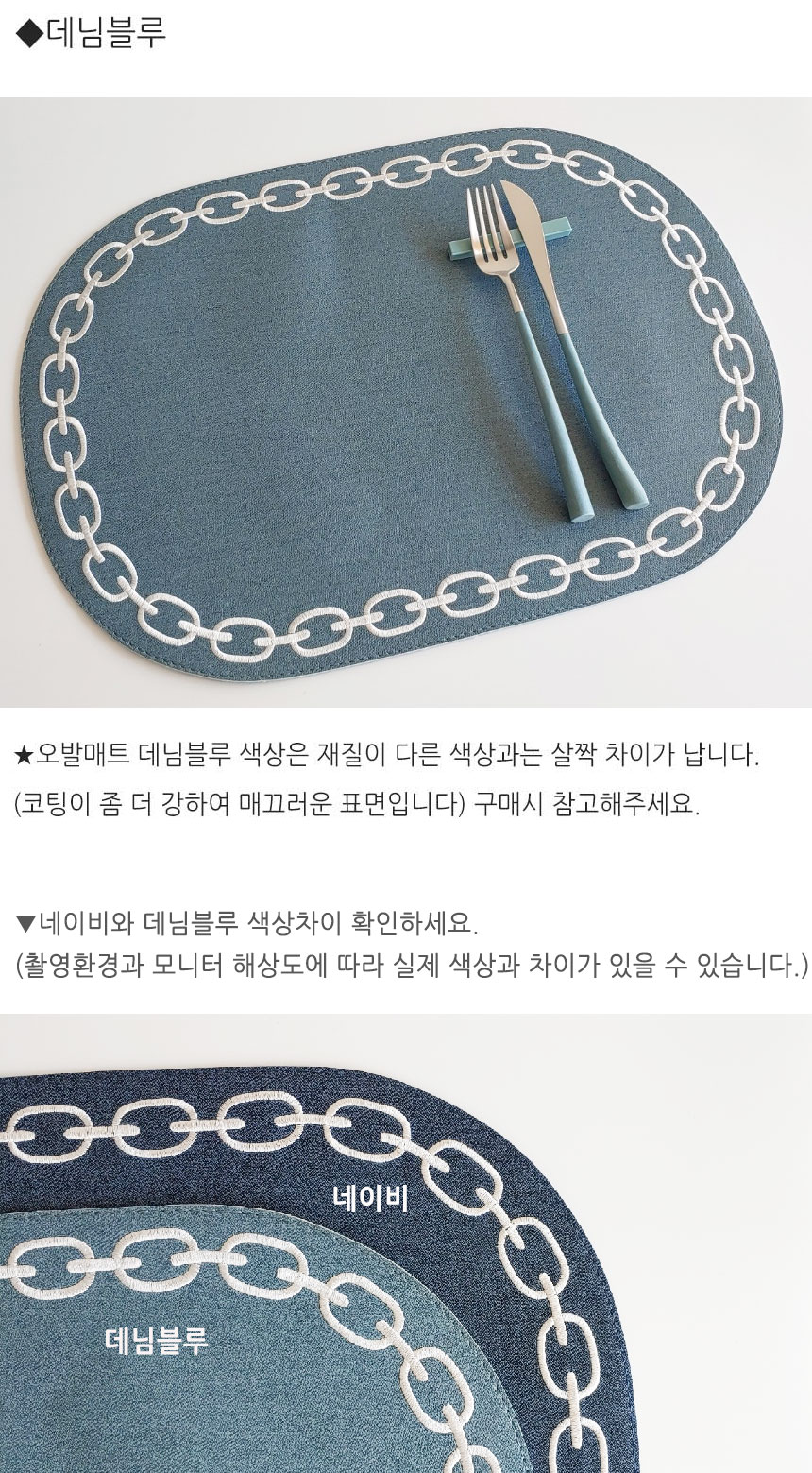 Artepele artificial leather oval chain embroidery table mat 2 pieces, navy navy_denim bluedenim blue / 아르떼펠레 인조가죽 오발 체인자수 테이블 매트 2장, 네이비네이비_데님블루데님블루