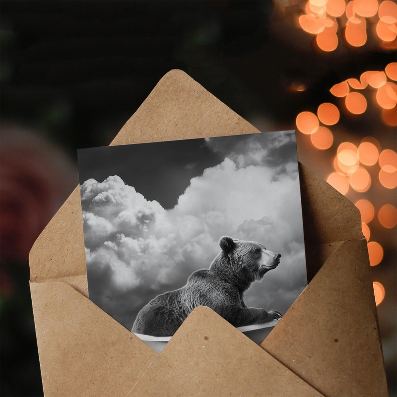 Artery8 Greeting Card Surreal Bear in Bathtub Black White Bath Time Blank For Him Or Her Art Birthday Card
