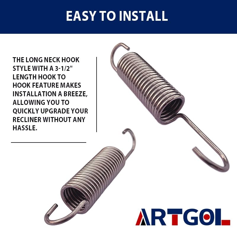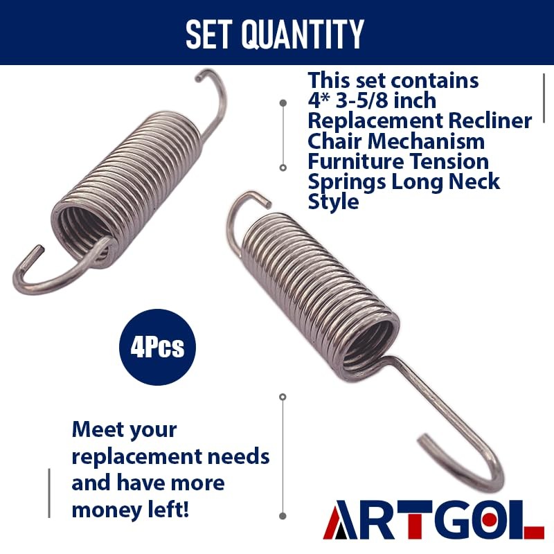 Artgol 4 Pcs 3-5/8 inch Replacement Recliner Chair Mechanism Furniture Tension Springs Long Neck Style - Catnapper/Flexsteel Recliner Springs Replacement - Recliner Spring Mechanism Parts