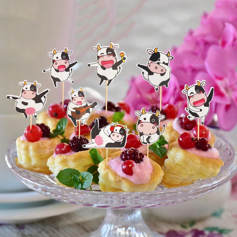 - Sparkling cow cupcake toppers makes your cupcake become the focus of farm animal theme birthday party.