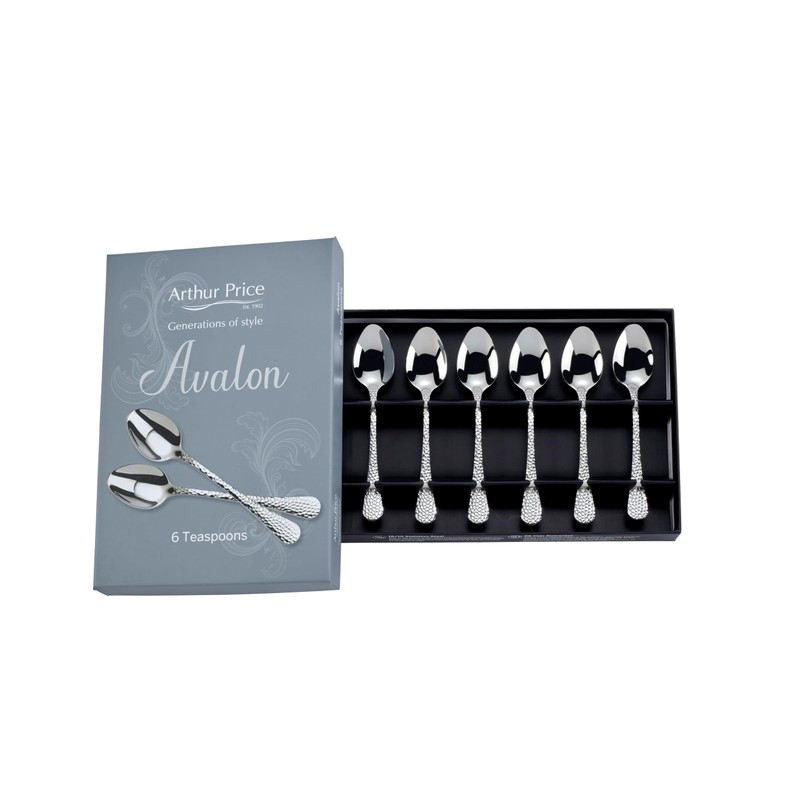 Arthur Price Avalon Box of 6 Tea Spoons, Silver