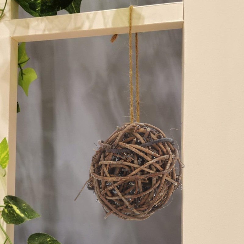 ARTIBETTER 10pcs Wicker Rattan Balls Natural Grapevine Ball Christmas Tree Ball Ornament Parrot Bird Chew Toys for Christmas Party Garden Wall Decoration 6cm