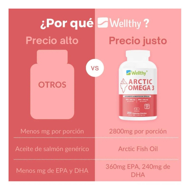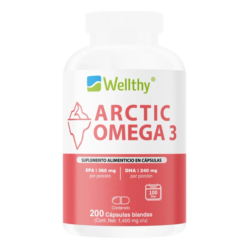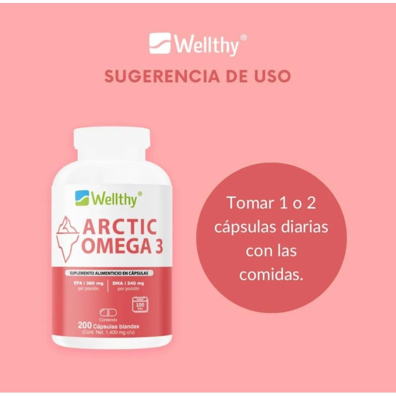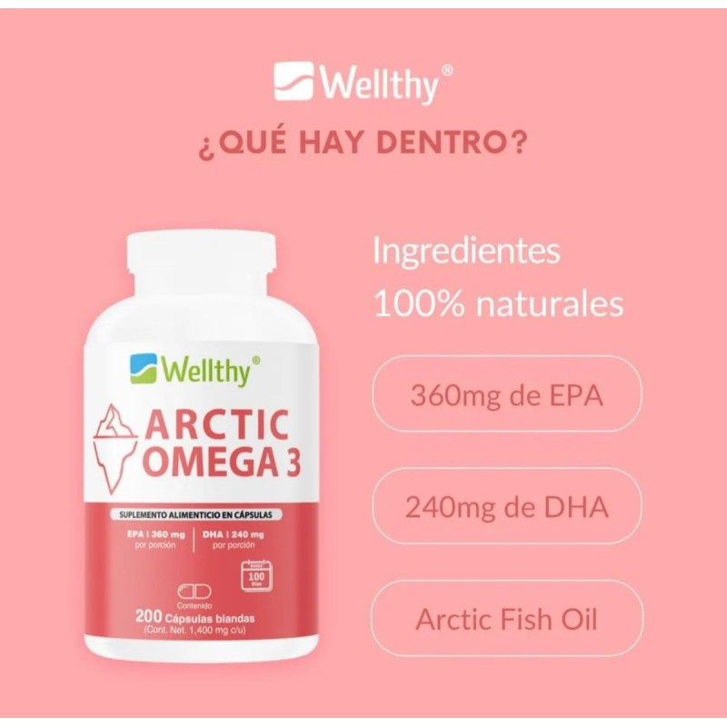 🐟💙 Wellthy Arctic Omega 3 – 200 Softgels | 360mg EPA + 240mg DHA | 100 días de consumo | Premium & Seguro