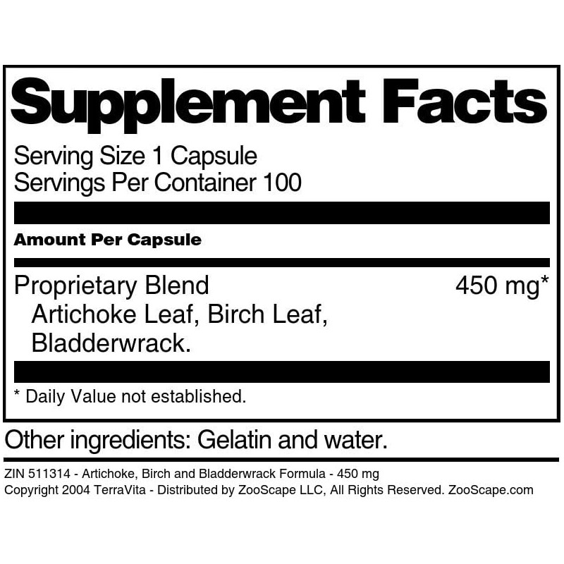 • Artichoke, Birch and Bladderwrack Formula - 450 mg (100 capsules, ZIN: 511314)