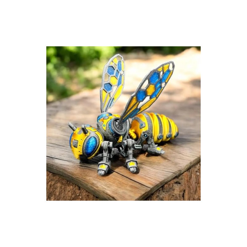 Articulated Cyber Bee Figurine – 3D Printed Stress Relief Desk Toy – Futuristic Interactive Collectible for Teens & Adults – 3D Printed in Canada