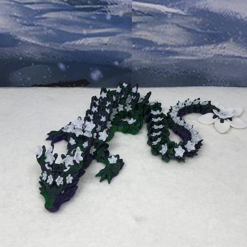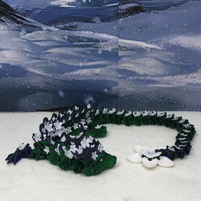 Articulated Dragon, 3D Printed Green and Puple Cherry Blossom Dragon, 12" Dragon, Fidget ADHD Toy for Autism, Gift Dragon Toy D044-DR