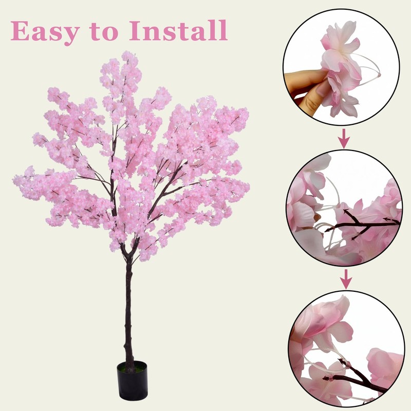 - Easy to assemble: Our pink faux cherry blossom tree contains sturdy inner metal wires, and you can adjust the shape of the branches and flowers as you like. After it is removed from the box, your adjustments may be needed to restore the tree to its best appearance. You just need to install two tree trunks according to number, and it is easy to remove when not needed. Don't worry about falling flowers, insert flowers back into the space without glue.