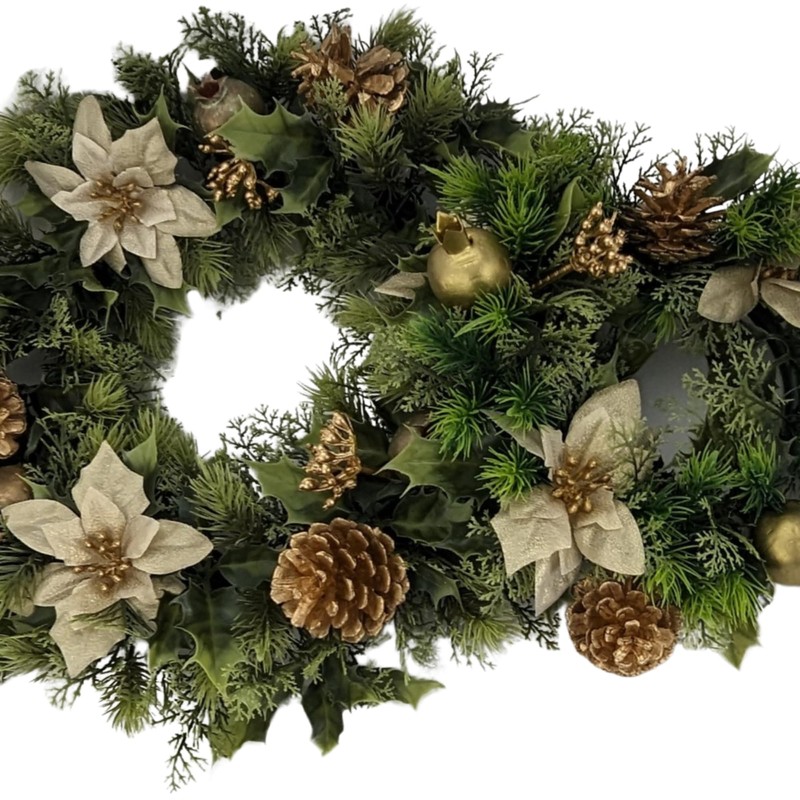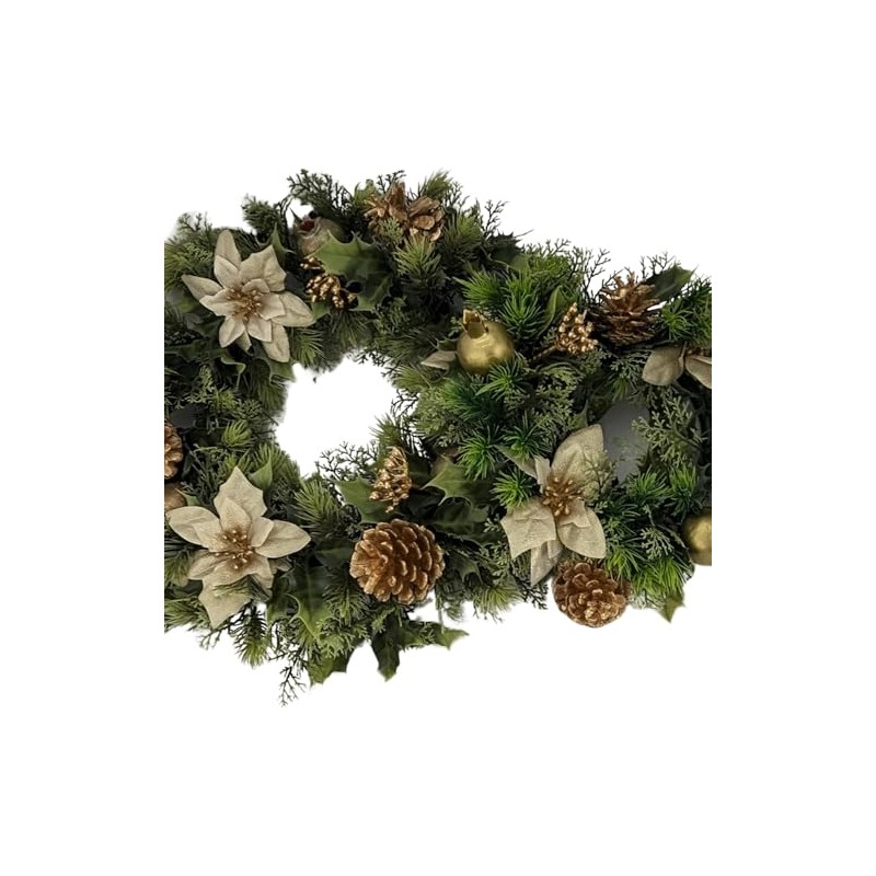 Artificial Christmas Wreath for indoors and outdoors (Gold Poinsettia, 10" (25cm))