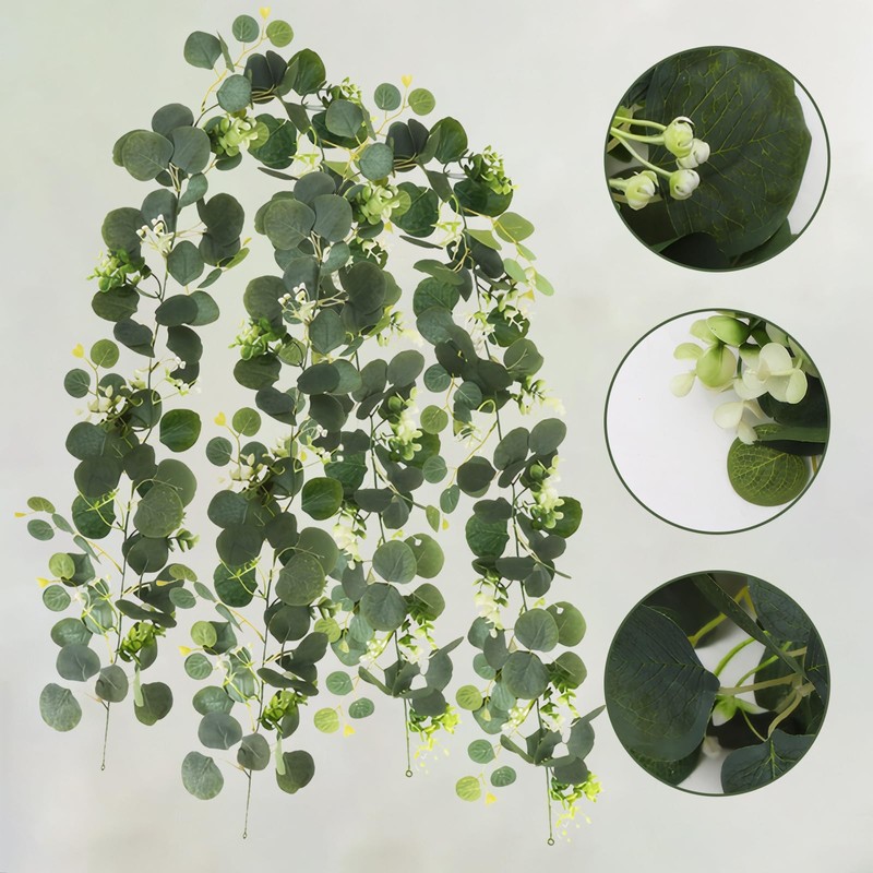 Artificial Eucalyptus Rose Vine, 2 Styles, Climbing Plant for Wedding Backdrop, Wall Decor (5.9Ft 2-Piece Set of Flower Buds)