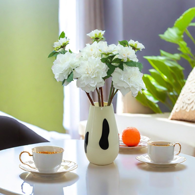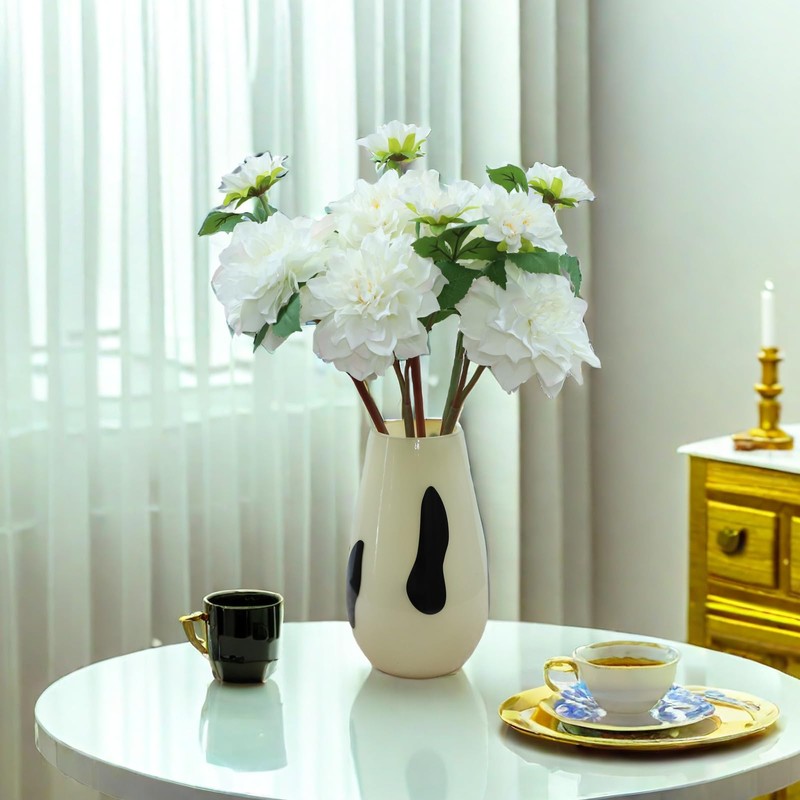 Artificial Flowers Dahlia and Chrysanthemum Silk Flowers, 5-Piece Set, for Home and Wedding Decor (White)