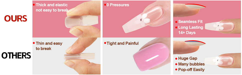 - Long Lasting Wear: Our nail kit are not easy to chip, waterproof, have strong adhesion, reusable, and can last more than 14 days with proper use. (Avoid getting wet immediately after wearing)