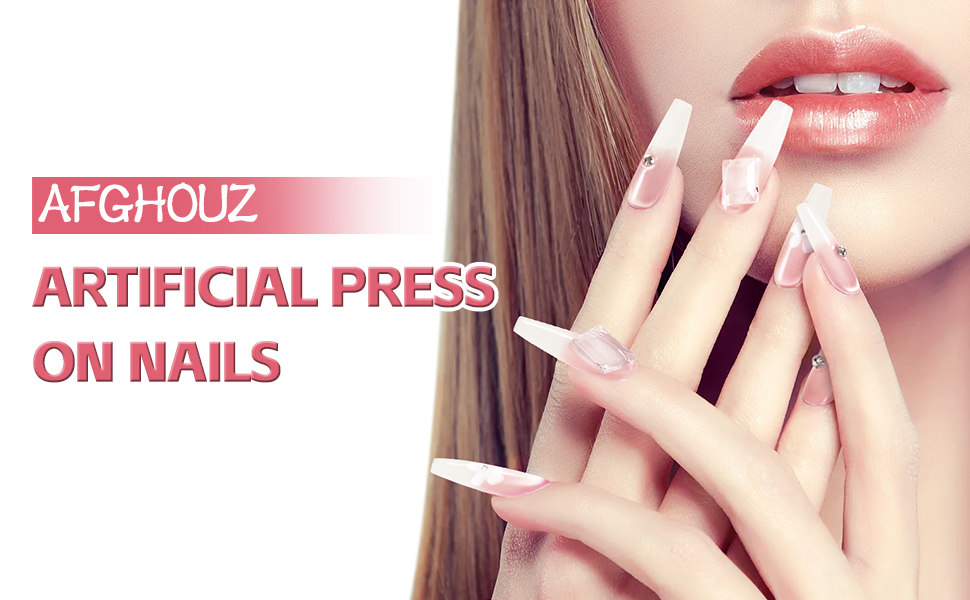 - Artificial Press on Nails: AFGHOUZ's press on nails square long are all handmade. Compared with the ordinary press-on nails the texture is more comfortable, does not hurt the nail, is not easy to break, good texture, the effect is more realistic, presenting a natural and beautiful appearance, just like the effect done in the nail salon.