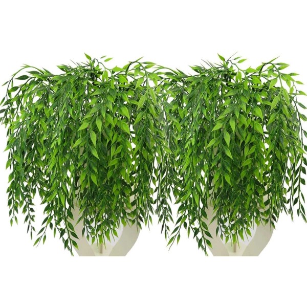 Artificial Weeping Willow, Plastic Plants Greenery Leaves Fake Hanging Vine