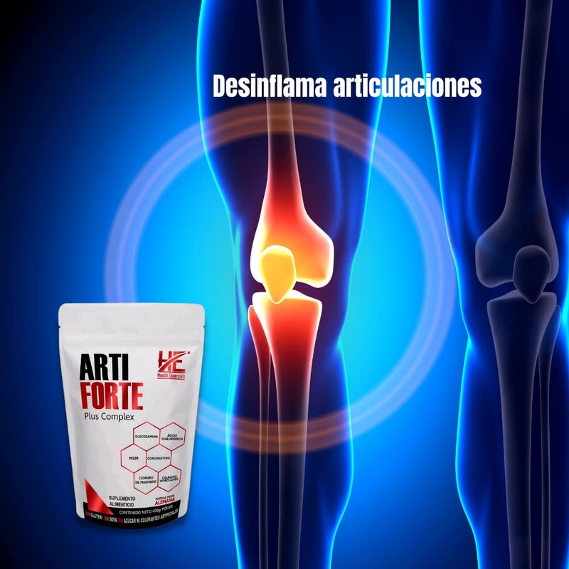 ARTIFORTE (Colágeno ,Glucosamina, Condroitina, MSM, Cloruro de Magnesio, Ácido Hialurónico) POLVO 400G, HEALTH ESSENTIAL SA DE CV, 1016, Huesos y Articulaciones más Fuertes para que te Sientas Mejor, Blanco