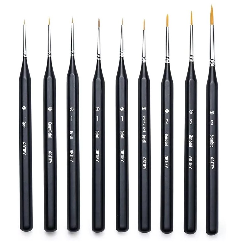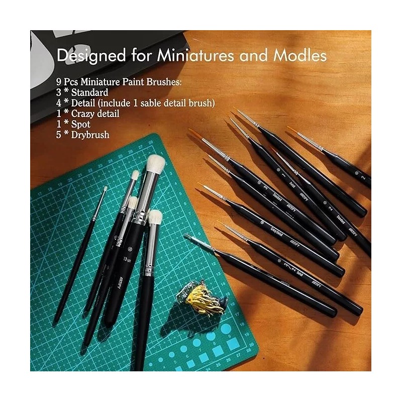 ARTIFY 14PCS Miniature Drybrush Paint Brush Set, Small Detail Model Paintbrushes - 9PCS