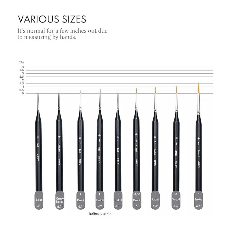 • Care Instructions: To maintain optimal condition, it is recommended to thoroughly clean the modle brushes after each use to prevent paint hardening, which can affect the tip shape and softness. Avoid soaking brushes in water or solvents for prolonged periods to extend their lifespan. Store brushes by hanging or laying flat to prevent deformation. Choose the appropriate brush based on the type of paint for the best painting outcome