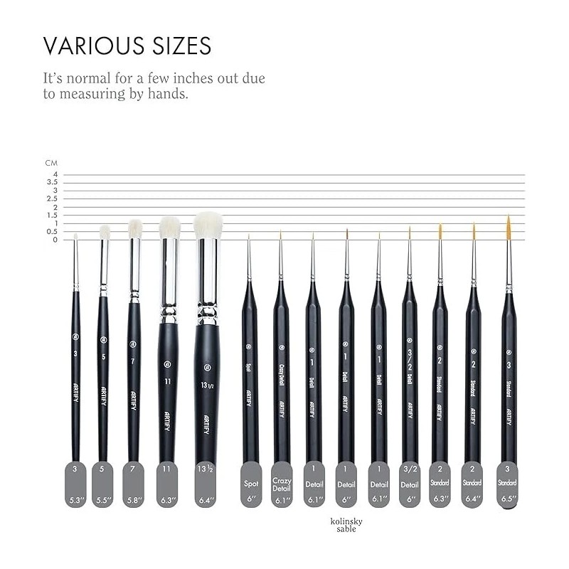 • Performance: Alongside our set's durable nylon and fine sable brushes, we’ve introduced 5 specially crafted dry brushes. These are equipped with dense, semi-stiff, and springy bristles, perfect for the dry brushing technique that requires a robust yet flexible brush to highlight textures and edges without applying too much paint. These qualities make the dry brushes highly effective for achieving the desired effect with control and subtlety