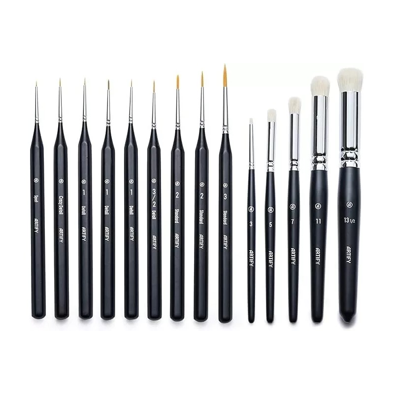 ARTIFY 14PCS Miniature Drybrush Paint Brush Set, Small Detail Model Paintbrus...