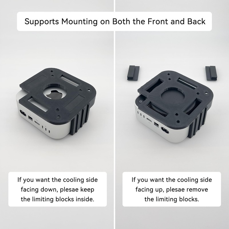 - 【Multi-Angle Mounting】With it, you can place your Mac mini at multiple angles. It allows the Mac mini to be positioned with the top facing up or down, the front facing forward or backward, and even standing on its side.
