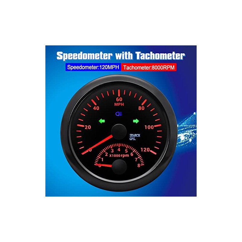 ARTILAURA Velocímetro GPS 0-120MPH con tacómetro 8000 RPM calibre 3.346 in 3-3/8 pulgadas, medidor de velocímetro GPS para barco con antena para coche marino (negro)