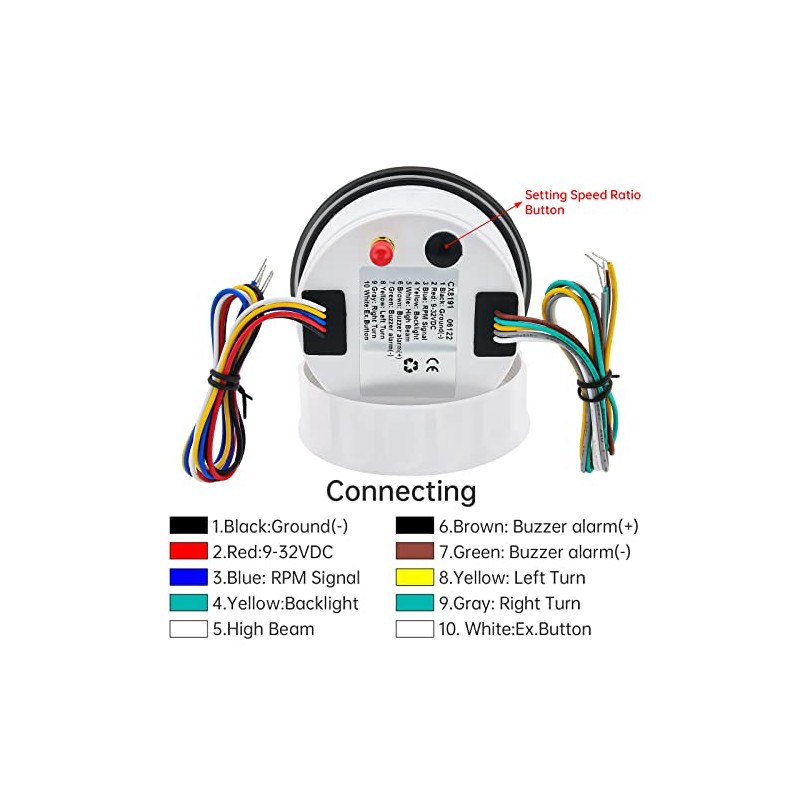 - Función: el medidor del velocímetro GPS indica rango: 0-120 MPH, tacómetro: 0-8000 rpm. Luz indicadora: IZQUIERDA, ALTA Y DERECHA. Rango de kilometraje: 0-99999.9millas