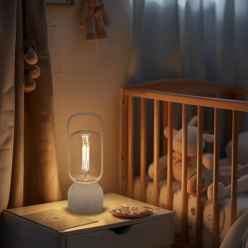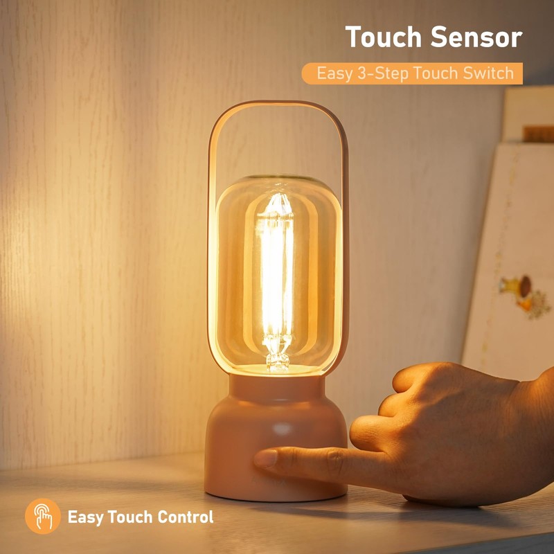 - Retro & Aesthetic Design- This portable LED table lamp is retro and elegant. The body and handle of the light are in integration design. The exposed glass light bulb,which has edison-style LED filaments that light up,sits right up against the handle. With nice design and finish, the lamp is very light but feels solid in your hand. The lamp looks very attractive and it will surely grab people's attention and compliment your home décor.