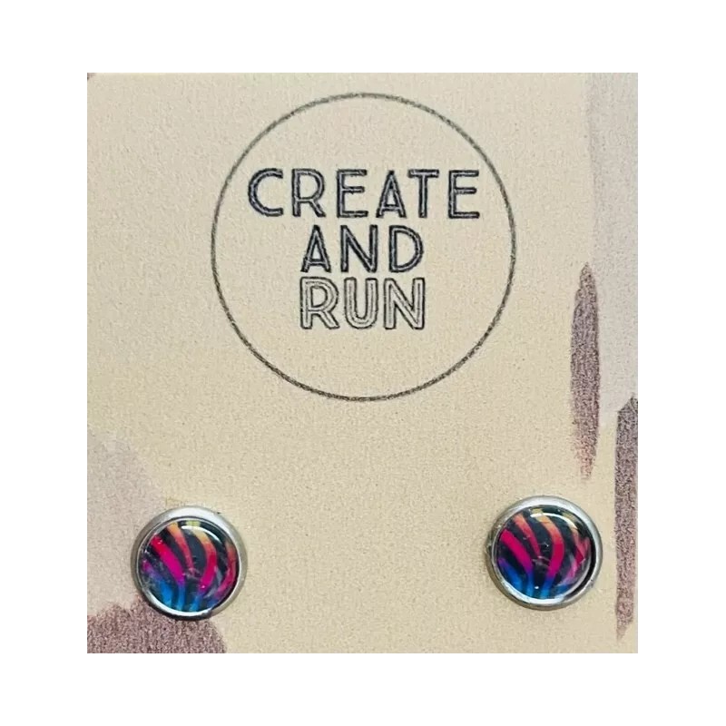 Artisan Hypoallergenic 8mm Stainless Studs Glass Dome Rainbow Zebra Stripes RTS