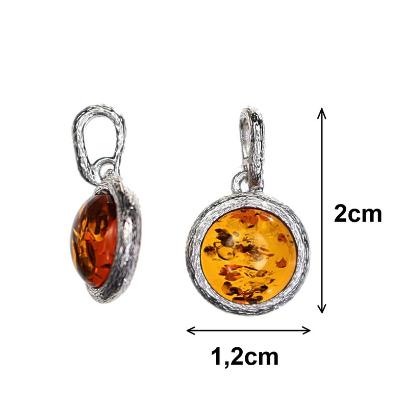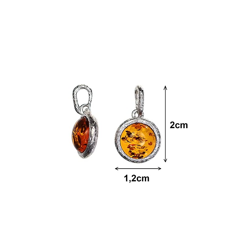 Artisana-Schmuck Amber Pendant, Modern Small Round Pendant (without Chain) Made of Amber and Rhodium-Plated 925/000 Sterling Silver, Rhodium-plated 925/000 sterling silver Baltic Amber, Amber