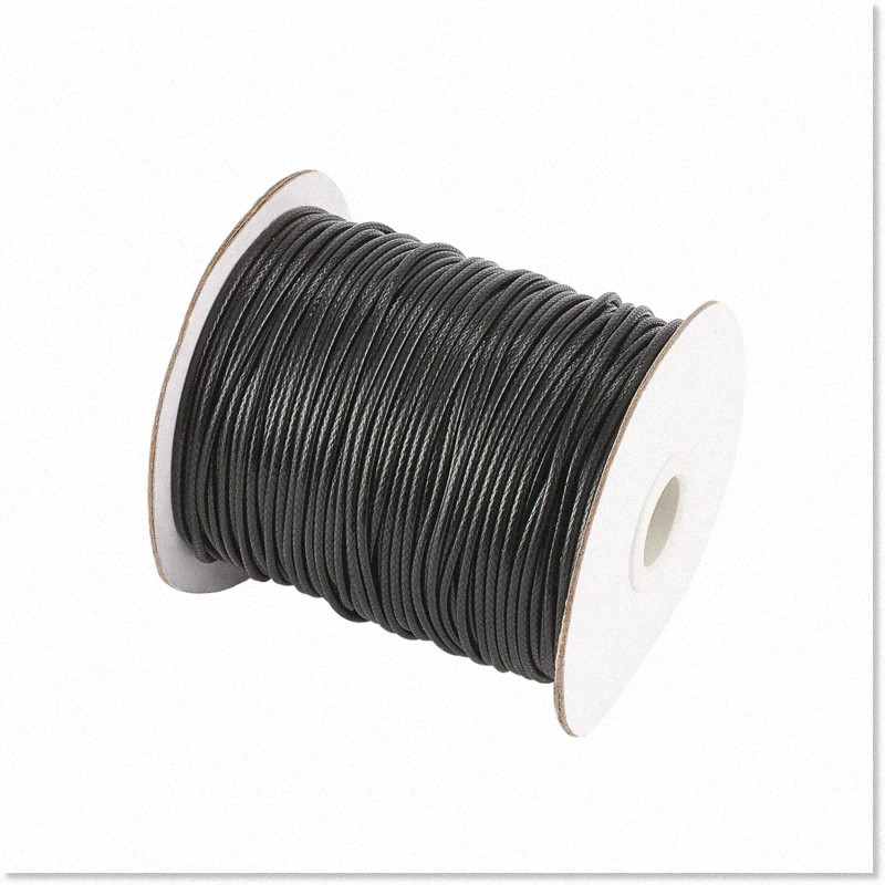 ArtisanPapa Black Waxed Polyester Cord - High-Quality 90 Yards 2mm Braided Thread String for