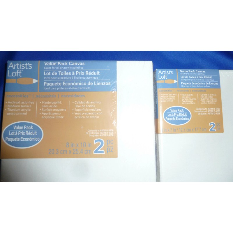 Artist's Loft NEW Artist's Loft White Canvas Value 2pc 8”x10" Panels & 2pc 5"x7" Panels NIP