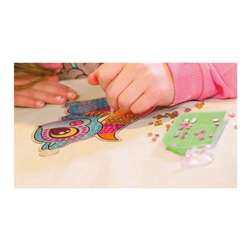 - Contents: 3 templates, 4 bags of different coloured rhinestones, 3 suction cups with hooks, 1 container, 1 adhesive plate made of wax, 1 pen for attaching the rhinestones, 1 instructions (English language not guaranteed).